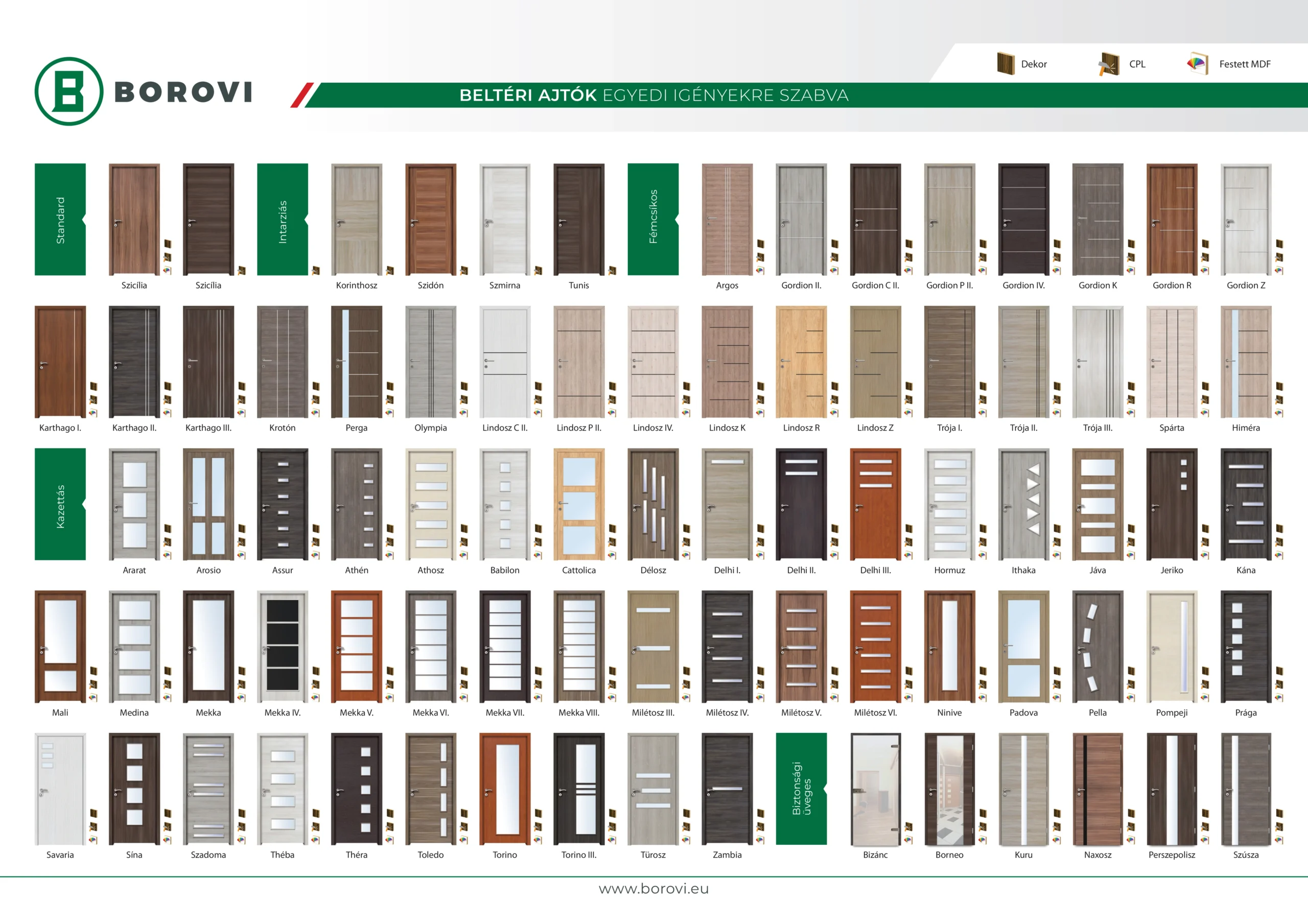 Színválaszték a BOROVI CPL beltéri ajtókhoz